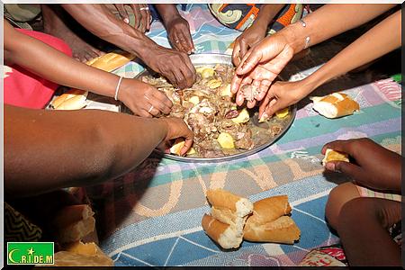 Quant à partager le repas de certaines familles et d'autres non, la réponse est très simple. Lorsque l'on me convie avec une certaine insistance à le partager, je le fais, et lorsqu'il n'y a par exemple que 9 dattes à se partager pour une famille de 9 personnes, j'éprouverais bien de la gêne à priver l'une de ces 9 personnes de la seule datte qu'elle peut manger. Agir autrement exprimerait un manque évident de coeur !!!