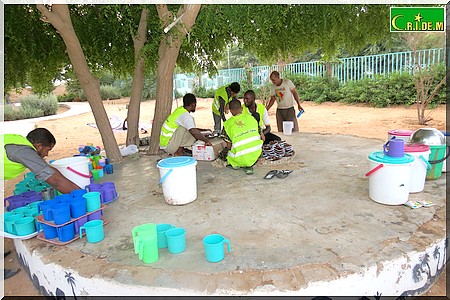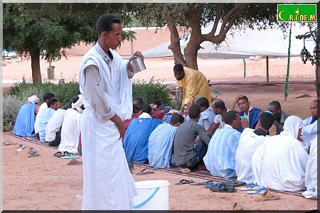 A quelques mètres de là, les volontaires de l’association Almoustaqbal font des va-et-vient sans arrêt pour servir de la soupe aux légumes, des dattes, du zrig. Bouha Ould Sidi, un des membres de l’association, veille au grain, donne des instructions. "Chaque jour, des centaines de personnes viennent manger ici. Il faut donc avoir l’œil sur tout pour que ceux qui viennent ici se sentent à l’aise comme chez eux", explique le jeune homme.