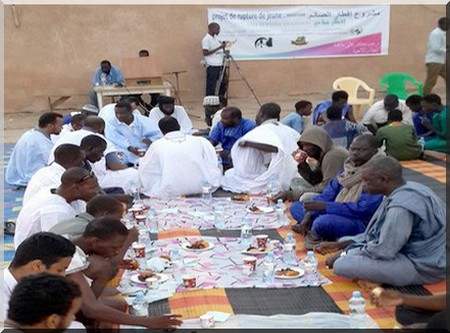 Bocar Baila Bâ - De nombreuses familles et des jeunes démunis habitant Sebkha se sont retrouvés vendredi 10 juillet 2015 au terrain de Basra pour une rupture de jeûne en groupe. Ils étaient réunis à l'appel de l'association Houb Al watan, en partenariat avec l'ONG Besma Emel, Eveil et l'ONG canadienne de bienfaisance.