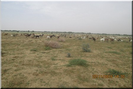 Cette année la cuvette a été inondée et les paysans que nous sommes sont descendus en masse pour la cultiver. Des gendarmes sont venus nous arrêter. Nous avons fait la prison d’Aleg pendant 10 jours avant d’être relâchés. Ceux qui ont continué après nous ont encore subi le même sort. Lorsque les graines ont germé, ils nous ont interdit de les surveiller et les animaux ont tout dévasté.