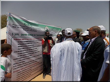 Prenant conscience de ce phénomène, il noté que son département , en application des orientations de son Excellence Monsieur Mohamed Ould Abdel Aziz, Président de la République et sous l’impulsion de Monsieur le Premier Ministre Yahya Ould Hademine, a pris un train de mesures visant à sensibiliser les populations nationales sur l’importance de l’environnement et travaille constamment en vue d’atténuer les effets négatifs de l'action de l'homme sur les ressources naturelles.