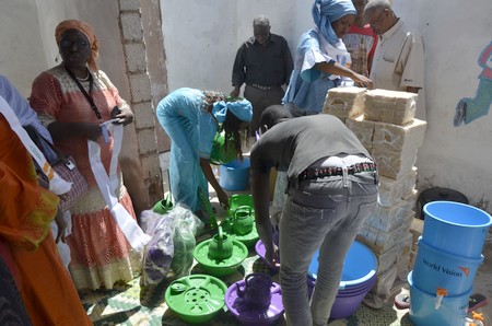 Le don kit Wash en chiffres : 30 cartons de savons de Marseille, 15 Makssele + bouilloire (kit complet), 200 Gobelet en nikel pour enfant, 10 Sceaux avec robinet fontaine, 20 Savonnière (porte savon), 10 Bassine en plastique de 10 litres.