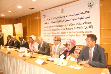 CNDH/RINADH - La Commission Nationale des Droits de l’Homme (CNDH) de Mauritanie a organisé en partenariat avec le Réseau des Institutions Nationales Africaines des Droits de l’Homme (RINADH) une rencontre régionale des Institutions Nationales des Droits de l’Homme (INDH) en marge de la 62ème session ordinaire de la Commission Africaine des Droits de l’Homme et des Peuples (CADHP) et ce du 23 au 24 Avril 2018 à Nouakchott.