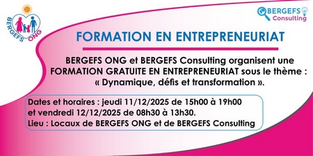 Les 11 et 12 décembre, une formation gratuite sur l’entrepreneuriat - sous le thème plus précisément de : « Dynamique, défis et transformation » - a eu lieu dans les locaux de BERGEFS.